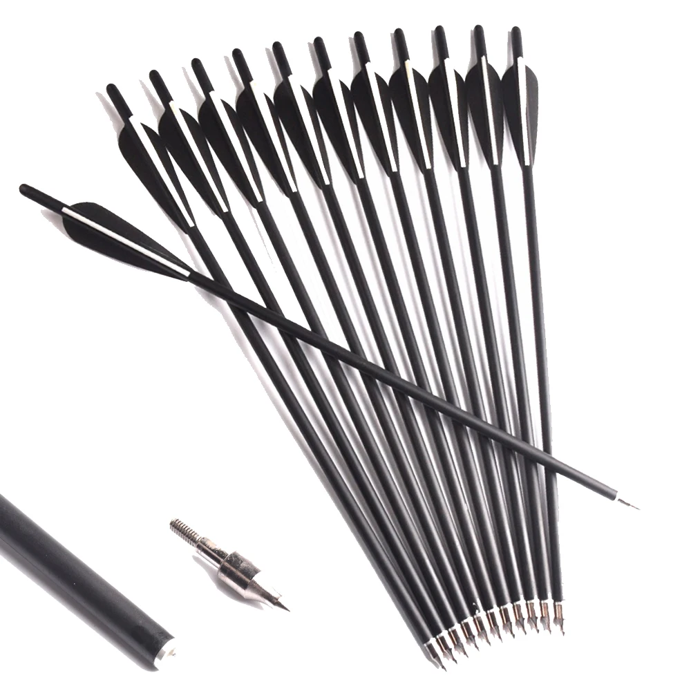 6/12/24Pcs 17/20 Inches Length OD 8.8 mm Crossbow Carbon Arrow with 2 Black 1 White Feather for Arc