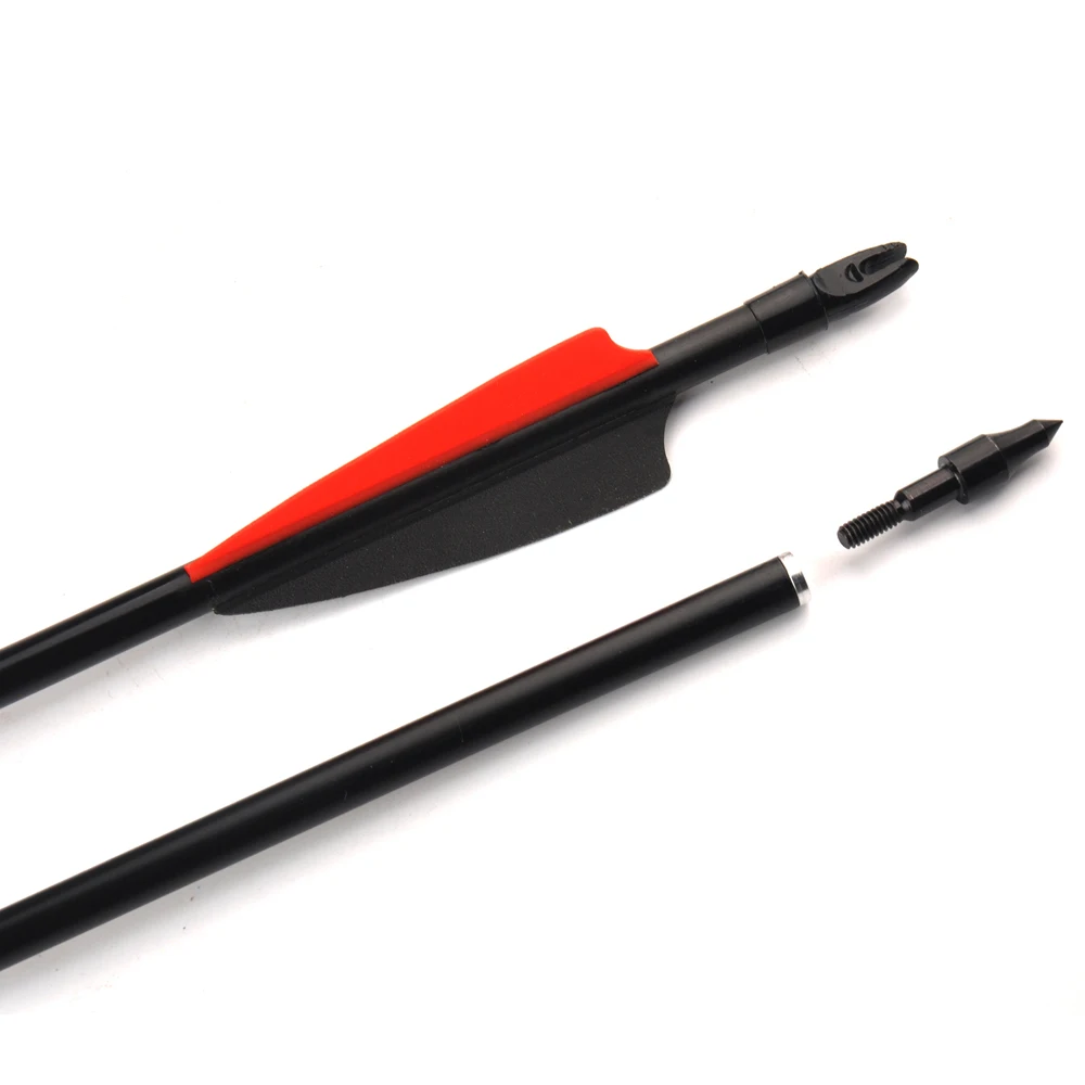Best Spine 500 OD 8mm 30" Fiberglass Arrow with Black Red Feathers and Replaceable Arrowheads for Archer